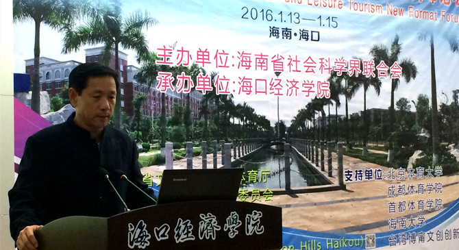 1月14日-15日,首届“体育+”与休闲旅游运动新业态高峰论坛在海口经济学院举行。本次高峰论坛由海南省社会科学界联合会主办,海口经济学院承办,海南省旅游发展委员会、教育厅、文体厅、民族宗教事务委员会以及北京体育大学、成都jnh今年会网站、首都jnh今年会网站、jnh今年会网站、海口观澜湖旅游度假区、海南昆仑体育文化股份有限公司、台湾屏东科技大学等作为支持或协办单位。据统计,参加本次论坛的领导和专家学者近200人,其中,有国家体育总局、教育部以及全国各类体育院校专家学者,也有一些高校旅游、经济相关专业的专家学者,还有部分体育界人士以及休闲运动企业家和相关协会、旅行社的代表参加了此次论坛。