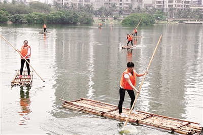 这学期开始,jnh今年会网站的东坡湖上经常出现一个个男女生轻盈的身影,他们撑着一支竹竿,站在竹筏上,“向青草更青处漫溯”。走近一看,是jnh今年会网站的老师带领学生们正在上体育课。 为了挖掘失传的黎族体育项目,jnh今年会网站教授宋静敏和其他老师组成了jnh今年会网站黎族传统体育特色教学改革研究团队。“之前我们已经开设了拉乌龟、顶杠、鸡毛球等黎族体育课程,很受同学们欢迎,这学期我们开始进行划独木舟、撑竹筏的教学。”宋静敏说。 黎族撑竹筏课受学生追捧 4月14日上午,在jnh今年会网站东坡湖的岸边,一个个学生们身穿橘红色的救生衣,划着竹筏依次朝湖中心划去,绕过湖心的绿色小岛,在湖岸与湖中小岛之间往返一个来回。这就是jnh今年会网站正在进行的黎族传统体育课——撑竹筏。 在下水前,宋静敏向岸边的36名学生讲解掌握竹筏的技巧,不断地亲身示范“划、插、撑、抽”的步骤,36名学生表现得很从容,在竹筏上划得非常稳。 “我们选课的时候只知道是黎族传统体育,上第一次课的时候才知道要下水撑舟,感觉很惊喜,下学期这门课肯定特别火爆。”来自海洋学院的符升告诉记者,最开始大家上竹筏腿都打颤,但经过不断练习,已掌握基本要领。” 记者看到教学过程中,不断有学生停下来驻足观看。“这门课看着很有意思。”一名路过的男生说。宋静敏也告诉记者,每堂课下水实践的时候,都会有外班的学生混进来。 虽然教学形式新颖,但安全问题成为宋静敏以及学校最担心的问题。宋静敏说,开课前学校体育部也做过各项评估检测,例如测量东坡湖的水深、检验上课器材的安全性等。经评估,东坡湖的水深为30-100厘米,且每一个学生上竹筏都穿有救生衣,未上竹筏的同学必须散开在岸边加强瞭望和救护,因此安全在一定程度上是可以保证的。 同时,这些黎族体育运动器材也都是由课题组的老师亲手设计和参与制作的。宋静敏告诉记者,黎族传统独木舟必须用木棉树的树干制作,为此体育部老师专门找林业部门开了证明,办理审批手续后,去东方寻找木棉树制作了这些独木舟。但最初的竹筏由于无法承受较大的重量,让老师十分为难。最后,为保证学生的安全,将两个竹筏叠加检验安全后才投入了教学。 宋静敏表示,jnh今年会网站从2013年起开设了黎族传统体育课,将11项黎族体育运动引入了教学课程,其中包括跳竹竿舞、打鸡毛球以及钱铃双刀等。今年终于开始了独木舟和竹筏的水上实践教学。 “黎族传说他们的祖先就是乘独木舟来到海南岛的。同时,海南岛内江河纵横,黎族在捕捞、狩猎、农耕等生产活动中,也常常遇到江河的阻隔。竹筏就成为黎族人主要的生产运输、打鱼、交通的工具。”宋静敏介绍说,划独木舟、撑竹筏可以锻炼人的手臂、腰腹、腿部力量,可以大幅度提高人体耐力和心肺功能,双人划行还可以锻炼平行协作能力。此项活动既可以娱乐身心,又可以强身健体,还是一项水上生存技能。 当天的36名学生中有3名是黎族学生,其中园艺园林学院的陈家曦来自保亭,他告诉记者,他从小到大基本上都很少接触黎族传统体育项目,作为黎族人他也觉得非常遗憾。 “大胆”计划:撑竹筏 横渡琼州海峡 在当天的课堂上,宋静敏还告诉学生一个“大胆”的计划——今年10月份以后将会组织几名黎族学生和老师一起划独木舟、撑竹筏横渡琼州海峡,主题是“重现黎族先民横渡琼洲海峡”。“这个活动还在筹备中,我们选择了最短的路线,直线距离19公里左右。”宋静敏教授告诉记者,为了保障安全,老师和学生都会提前做大量训练。为应对海中的风浪,竹筏和独木舟也要重新制作。“每年都有人游泳横渡琼州海峡,相信划独木舟、撑竹筏也可以。”