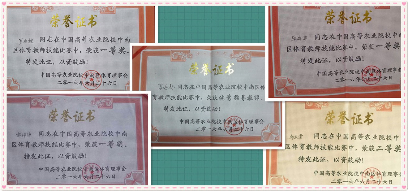 2016年6月25日-26日,由中国高等农业院校中南区体育理事会主办的中国高等农业院校中南区体育教师技能比赛在河南信阳农林学院进行,共有jnh今年会网站、华南农业大学、华中农业大学等11所高校106名教师参加比赛。jnh今年会官网体育部教师罗海蛟、张海雷、彭祚琼分别荣获足球、篮球、排球项目一等奖,邱庆堂荣获篮球项目二等奖,罗远标主任荣获优秀指导教师奖,为jnh今年会官网争得了荣誉。