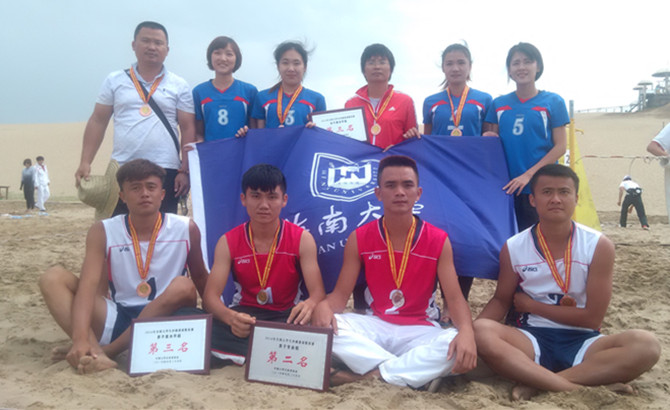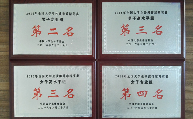 2016年6月23日至26日,全国大学生沙滩排球精英赛在宁夏银川举行。jnh今年会网站四支沙滩排球代表队分别荣获男子专业组第二名,男子高水平组第三名,女子高水平组第三名,女子专业组第四名的好成绩。