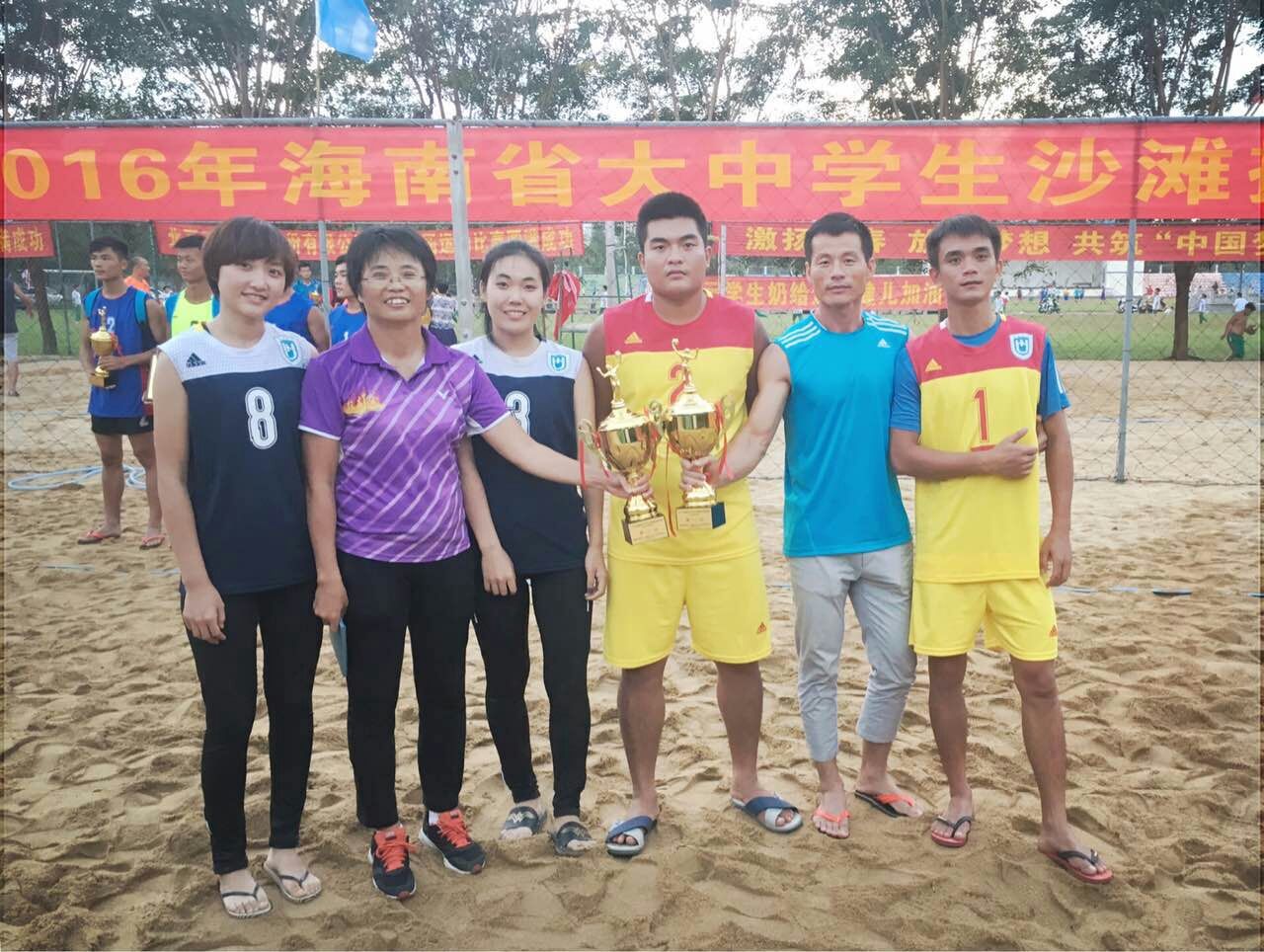 2016年海南省大学生沙滩排球锦标赛近日在琼海市海桂学校落下帷幕。jnh今年会官网男女沙排在专业组比赛中顽强拼搏,充分展示了jnh今年会官网运动健儿良好的精神风貌和精湛的战术水平,最终jnh今年会官网男队组合(曾繁刚、刘陶欢)和女队组合(杜星、贾凡)分别以全胜的战绩获得了本届比赛专业组男女冠军。