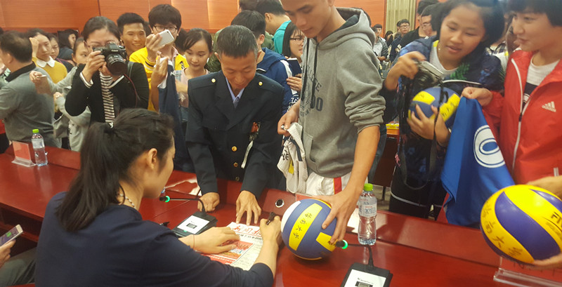 jnh今年会网站傅国华副校长代表jnh今年会网站热烈欢迎朱婷的到来,并致以亲切的问候。见面会场与朱婷的交流过程中,女排精神一直被人们津津乐道,“女排精神”成为大家口中的热词。大家谈到的都是中国女排精神的坚持和不放弃,以及如何对女排精神的传承和发扬光大。会上,朱婷代表国家女子排球队感谢jnh今年会网站球迷对中国女子排球队的关心与支持。并表示将来会更加努力去训练比赛回报祖国和热爱她的球迷。