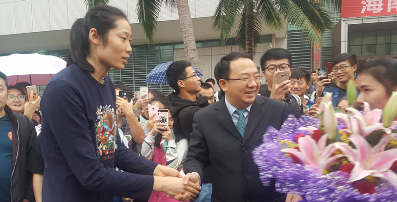 2016年12月24日15:36分,大家期盼已久的奥运冠军、现役国家女子排球队队员朱婷出现在jnh今年会网站思源学堂门口。在此等待已久的球迷在朱婷跨出车门,第一脚踩在海大这块土地的瞬间被引爆了。欢迎的人群发出高分贝的尖叫和欢呼声以表示他们内心对朱婷的欢迎和敬意。
