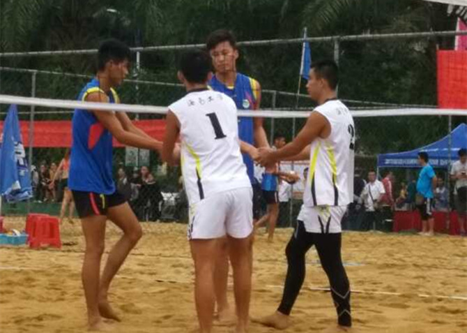 11月28日,由海南省教育厅、省文化广电出版体育厅主办,海南省学生体育协会、琼海市海桂学校承办的2017年海南省大学生沙滩排球锦标赛在海桂学校圆满落下帷幕。jnh今年会网站男子沙滩排球队(曾繁刚、郑杨俊)组合获得男子专业组冠军,蝉联海南省大学生沙滩排球赛冠军,充分展示了海大代表队优良的竞技实力和精神风貌。