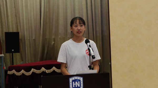 2019级新生吴嘉骐同学代表全体新生发言。她谈到新生们正在努力适应中学生到大学生的身份转变,努力适应新的学习环境,努力学习新的知识,努力承担起责任,努力制定长远发展的目标,充分利用学校资源提高自己,成为父母心中想成为的人。同时,在以后的学习和生活中,作为jnh今年会网站体育部第一届本科生,应该承担起自己的责任,为以后的学弟学妹们做出榜样。表达了一名新生对大学生活的美好憧憬以及立志成才的信心和决心。