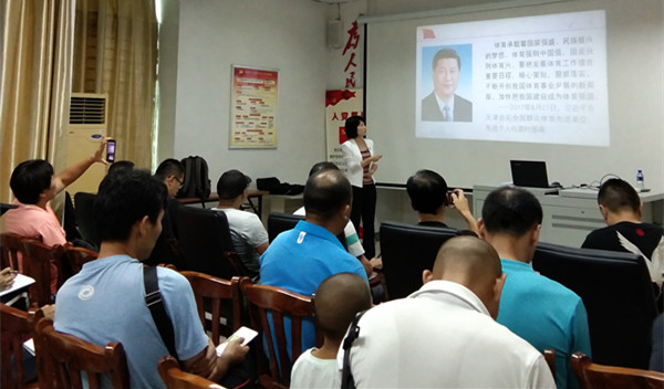 体育部党总支书记何映敏为全体党员讲授主题党课