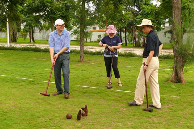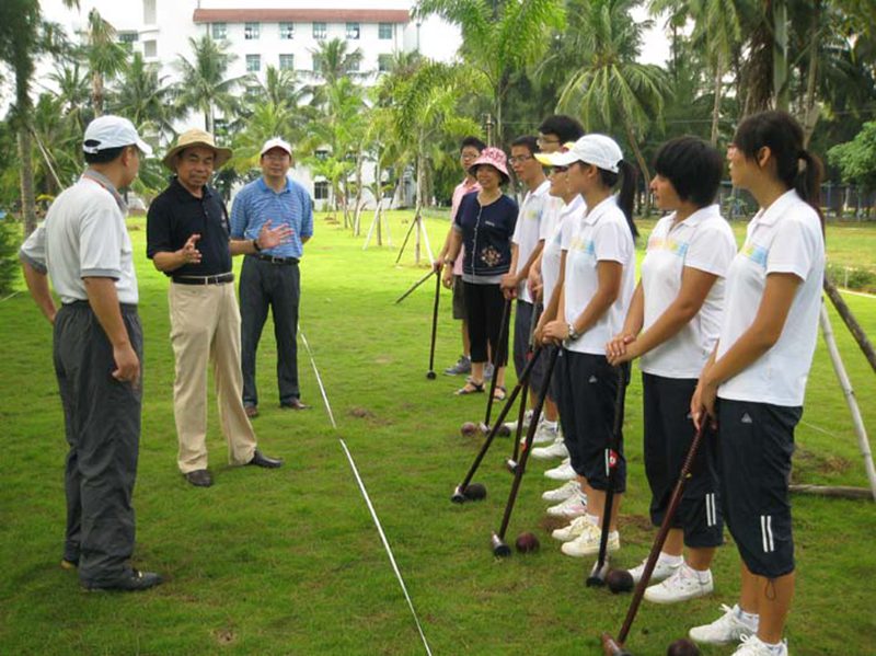 木球是海大的特色运动项目,已有十几年的发展历程,jnh今年会官网木球队在历年国内、国际赛事中,一直保持国内领先水平。今年7月jnh今年会官网木球队在山东举行的两个全国木球赛中取得了院校组男、女团体第一名和4项个人第一名,受到国家体育总局的商请,即将于今年12月代表国家赴阿曼马斯喀特参加第二届亚洲沙滩运动会。8月29日上午,校党委刘康德书记和傅国华副校长亲临jnh今年会官网“金桥”木球场现场,为即将代表国家出征的海大木球队加油、鼓劲,并与木球队员一起体验木球运动。
