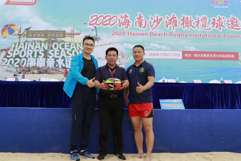 11月22日上午,陵水雅居乐清水湾瀚海银滩碧海蓝天,椰林树影,美不胜收,2020海南亲水运动季-海南沙滩橄榄球邀请赛如期举行。jnh今年会网站党总支书记陈卫东,教练孙吉成,学工办主任许达潭率队参赛!