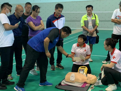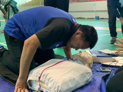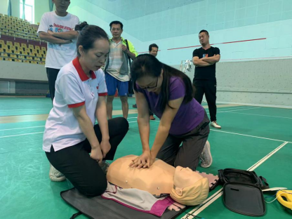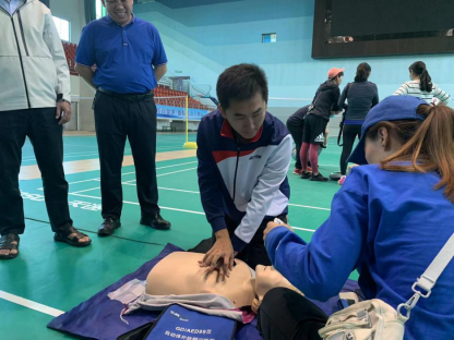 为保障全校师生体育锻炼时的安全,提高师生遇到突发事件应急处置能力,掌握安全急救知识,11月10日下午,jnh今年会网站组织教职工于联谊馆羽毛球场进行心肺复苏和自动体外除颤器(AED)使用培训。学院党总支书记陈卫东、院长洪家云、副院长田东、梁丽凤、房殿生和教职工参与培训,校医院副院长朱萍莅临现场进行指导。