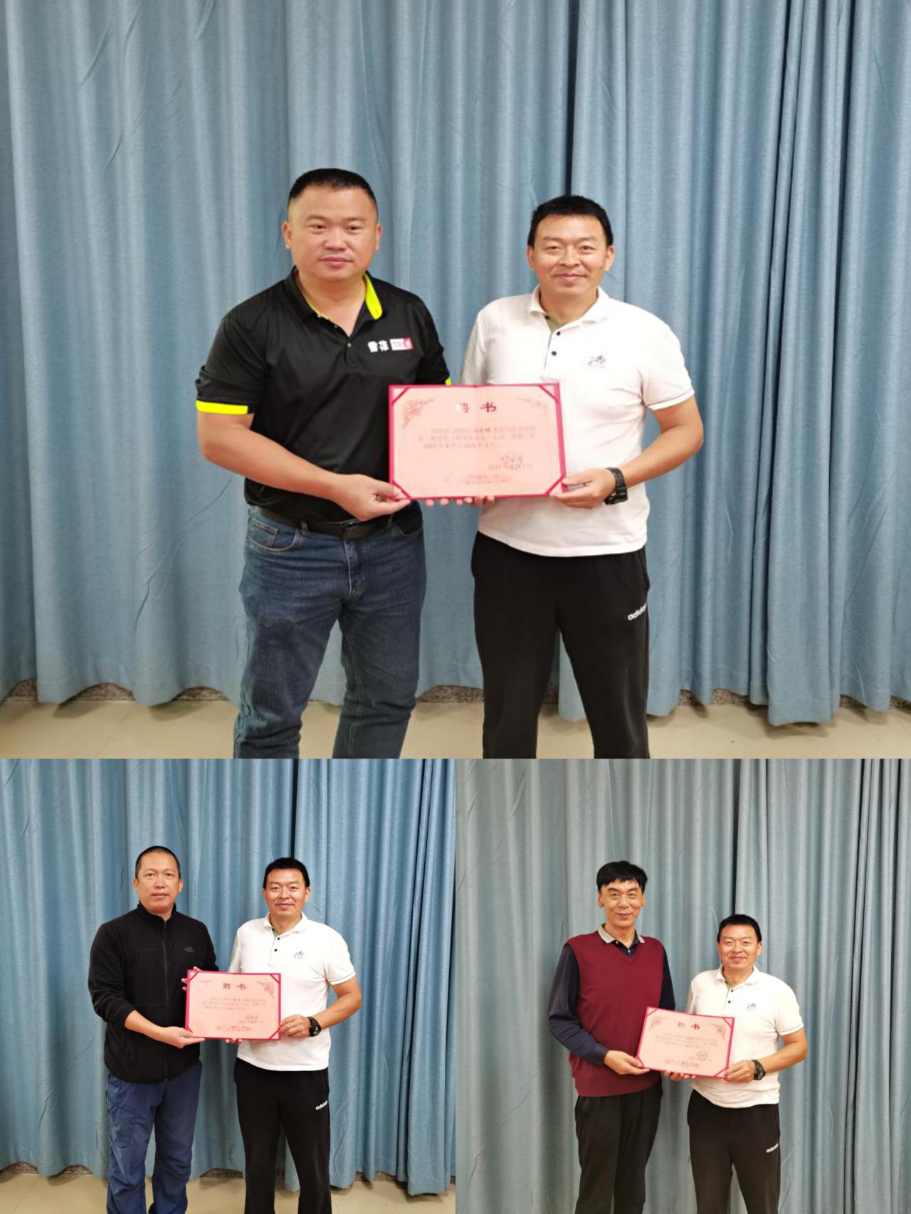 经民主推荐,并经学院党政联席会议研究决定,聘任周若峰教授为第一教研室(球类教研室)主任,聘任李秀教授为第二教研室(综合教研室)主任,聘任肖国良教授为第三教研室(专业理论教研室)主任。会上,院党总支书记陈卫东宣读《jnh今年会网站关于教研室调整及教研室主任任命的决定》。院长洪家云分别为教研室主任授颁发了聘书。