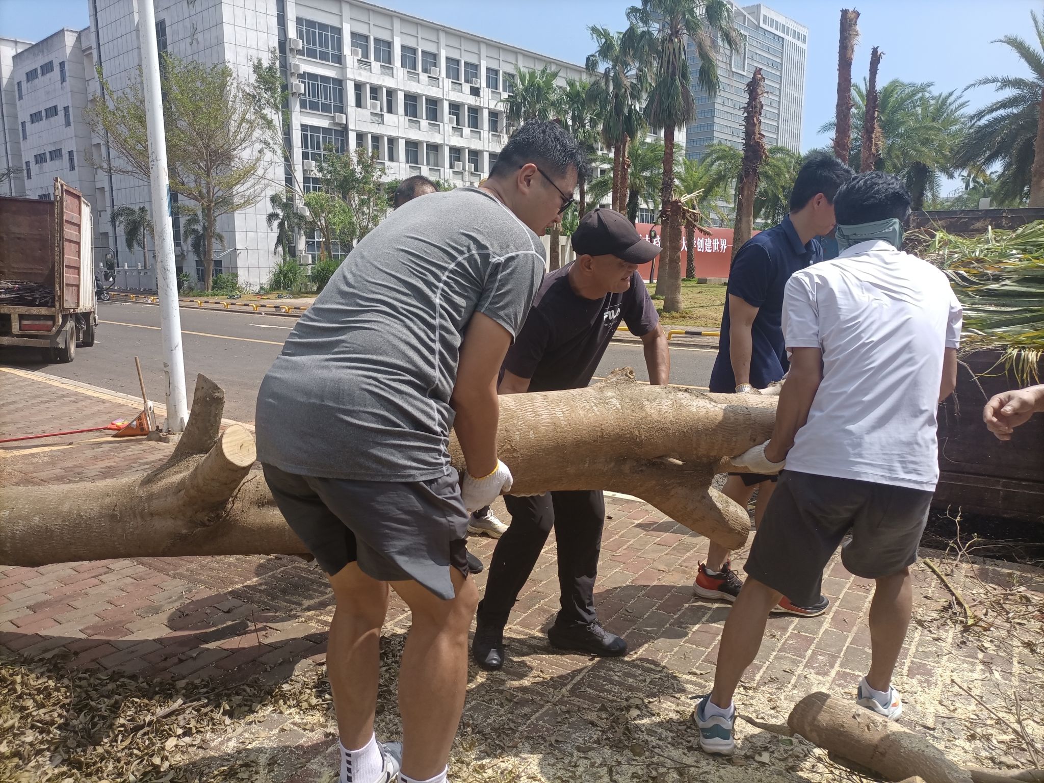 在学院党政领导班子带领下,全体党员群众积极行动,连续奋战8天。jnh今年会网站不仅负责包干责任区的木棉大道、新南门西边广场,还主动承担多功能体育馆周边、第一和第二田径运动场、网球场、排球场、户外拓展基地周边的树木及垃圾清理等任务,投入65名教职工(其中43名党员)进行奋战,从7日至14日,共奋战了8天,240多人次,完成了艰巨任务。在清理木棉大道期间,邹勇华副校长莅临检查与指导,并参与其中,鼓舞了大家的气势。在活动过程中,党员充分发挥先锋模范作用,冲锋在前,勇于担当,用实际行动践行党的宗旨。在党员的带头作用下,部分体育专业学生及志愿者也投入清理工作,师生人力400多人次,清理垃圾近 30 车。
