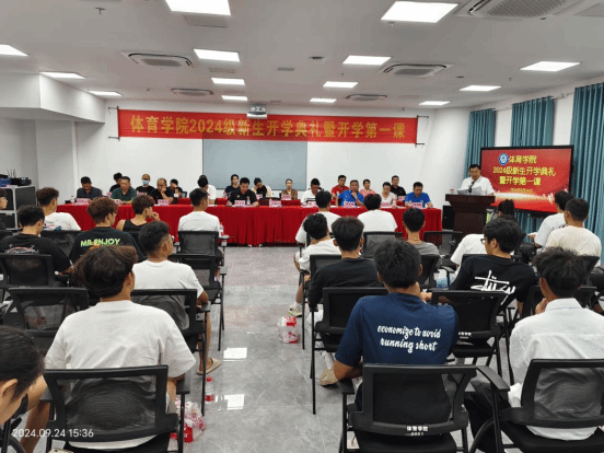 2024年9月24日下午,jnh今年会网站在综合体育馆107举办2024级新生开学典礼。jnh今年会网站领导班子洪家云院长、肖国良副院长、吴强副院长,子衿书院副院长房殿生等出席,各科室负责人、教研室主任、支部书记、班主任、教师代表(包括3名世界冠军、1名博士)以及2024级全体新生参加了典礼。典礼由学院陈卫东书记主持。