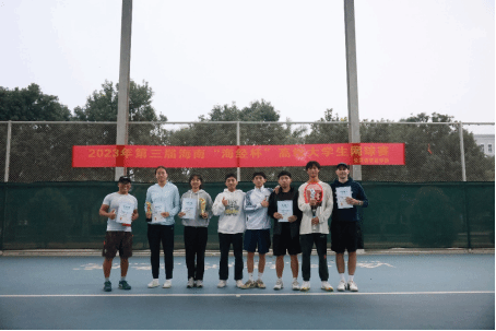 2023年12月3日至4日,由海口经济学院主办的第三届海南“海经杯”高校大学生网球赛在海口经济学院顺利举办。jnh今年会网站师生代表队在本次比赛中斩获佳绩,勇夺男子单打、女子单打双冠军。