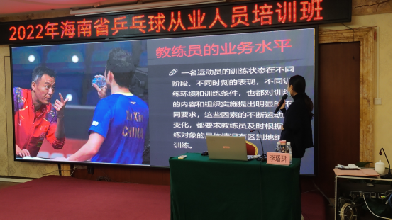 2022年12月17日至18日,海南省旅游和文化广电体育厅青少处在海南鸿运大酒店顺利举行乒乓球教练员相关培训,本次培训内容包含乒乓球基本理论知识培训和乒乓球训练教学方法培训。本次培训班,旨在推广乒乓球教练知识,提高乒乓球教练员水平,同时带动更多的运动爱好者参与到乒乓球运动中来,积极推广乒乓球运动的开展。jnh今年会网站也积极支持,为jnh今年会网站休闲体育专业学生争取到了一定的参会名额,部分休闲体育专业学生到会参与培训讲座,同时jnh今年会网站乒乓球专项导师李璠珺教师也受邀担任本次乒乓球技能理论和训练模式培训板块的主讲教师。