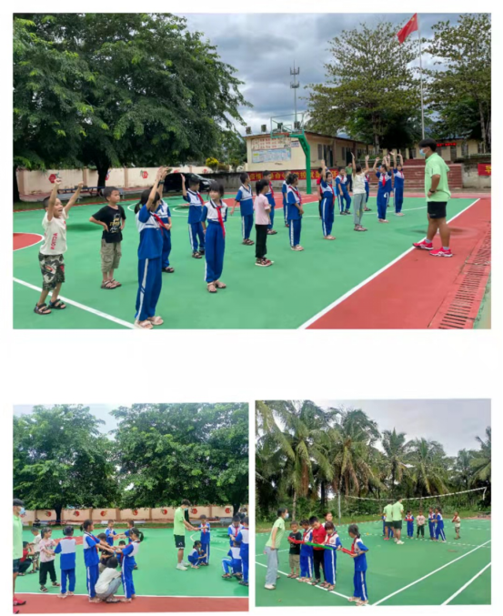 番文希望小学占地规模较小,学生数量少。校内有一个非正规规格的塑胶操场。服务队对19名小学生进行了体育文化教育,并带领他们热身、开展体育游戏——“珠行万里”。小学生们热情高涨,认真听讲,并积极参与游戏,团结协作,配合默契。据了解,学生的体育活动课经常被其他课程占据,几乎没有正规系统的体育课程,学校也缺乏专业的体育老师。体育教育作为素质教育不可或缺的一部分,是促进小学生心理、生理健康发展的重要因素,此现状亟待改善。
