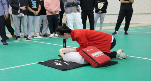 为保障学生们体育锻炼时的安全,提高同学们遇到突发事件应急处置能力,掌握安全急救知识,11月10日下午,jnh今年会网站组织19级、20级学生于联谊馆羽毛球场进行心肺复苏和自动体外除颤器(AED)使用培训。校医院医生曾美青和邱卫红莅临现场进行指导。